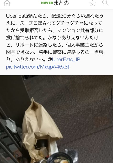 請負 uber eatsで注文 スープこぼれてたので受け取り拒否 廊下に