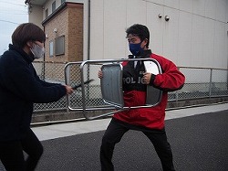 さすまたの使い方の指導 職員 鹿嶋市立高松小学校