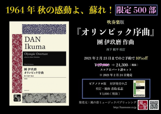 没20年 團伊玖磨のオリンピック序曲の吹奏楽版を西下航平の校訂で出版 株式会社スリーシェルズ プレスリリース配信代行サービス ドリームニュース