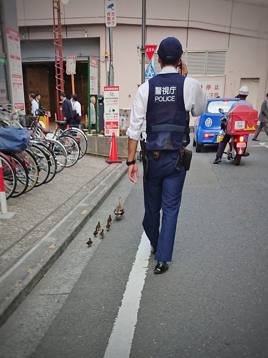 海外 平和な日本で仕事してる警察官が羨ましい 日本の警官がカルガモの親子を誘導する姿がほっこりすると海外で話題にwww 海外の反応 まとめし