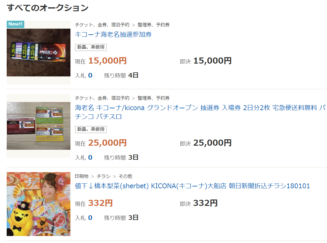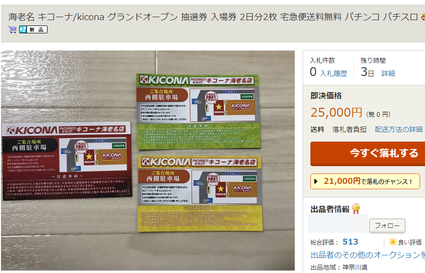 高価 新規オープン キコーナ海老名店 の抽選参加券が2万5千円でメルカリに出品される パチンコハック パチンコ パチスロ解析攻略まとめサイト