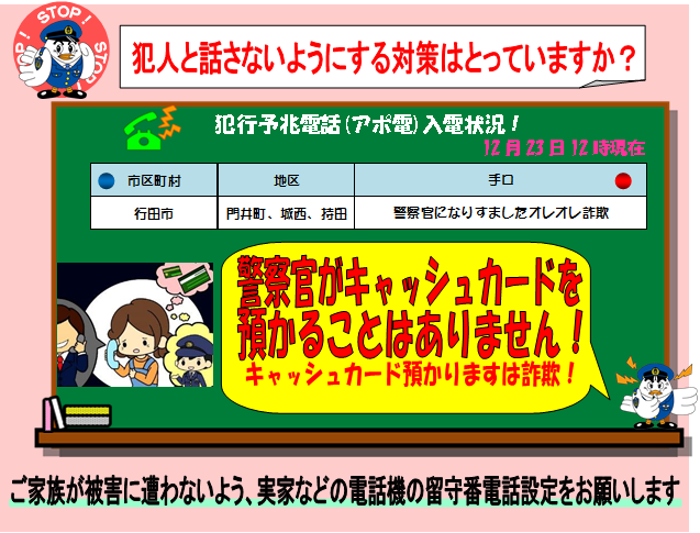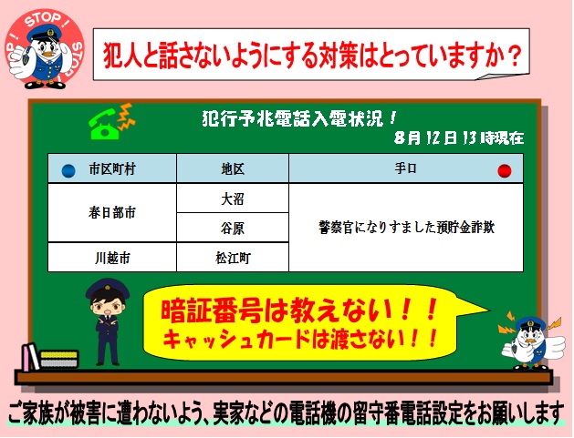 キャッシュカードをだまし取る手口に注意 埼玉県警察