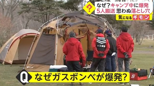 2020年12月7日 北海道苫小牧市のキャンプ場 で会社の同僚らがテント内でバーベキュー中 ストーブ近くのテーブル上に 置いてあったガスボンベが破裂して5人が軽いやけど 産業安全と環境問題について考える