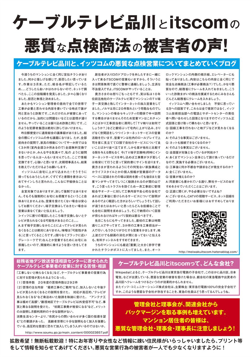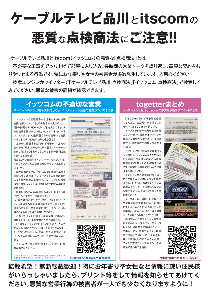 ケーブルテレビ品川とitscomの悪質な点検商法ツイートまとめ togetter