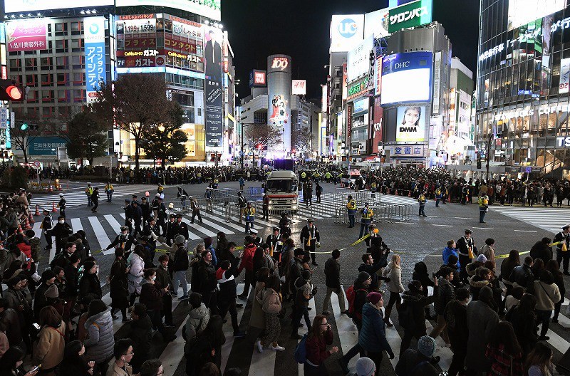 渋谷スクランブル交差点は今年もカウントダウンで大混雑 警察出動もカオス状態に ニュースサイトしらべぇ