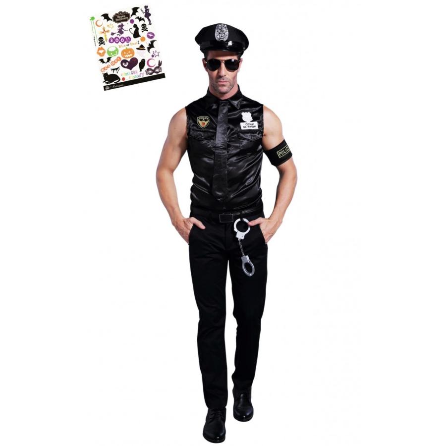 警官 コスプレ メンズ 男性 大人 ハロウィン 仮装 タトゥシール2枚付き