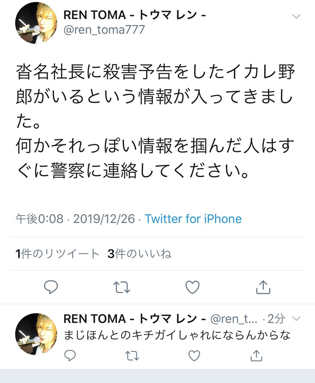 犯罪 高須克弥院長 twitterで 殺害予告 を繰り返したアカウントを警察に届け出る
