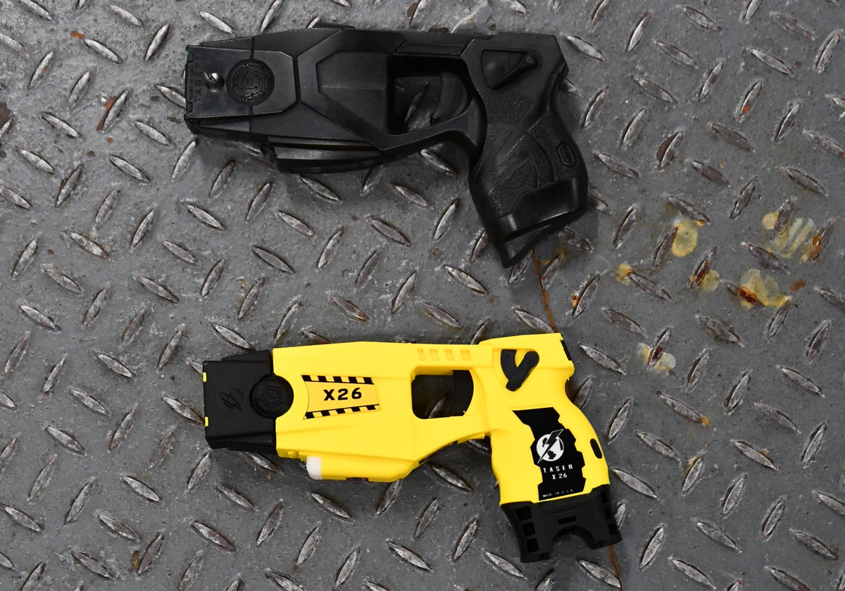 Taser ˈ t eɪ z ər は アメリカのアクソン社 旧テーザー インターナショナル が発売しているスタンガンのブランドである 2つの小さな棘が生えた射出体を発射し 標的となる人間の肌に突き刺さるようになっている 射出体の速度は秒速180フィート.