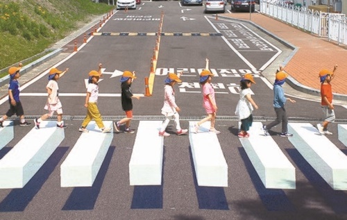 写真 視線を引きつけるトリックアート横断歩道 韓国 蔚山 joongang ilbo 中央日報