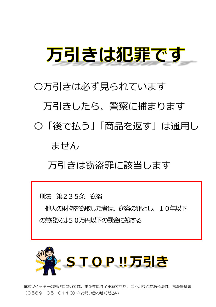 2011年5月19日 万引きとみなす行為は警察に通報します 福岡県万引防止連絡協議会
