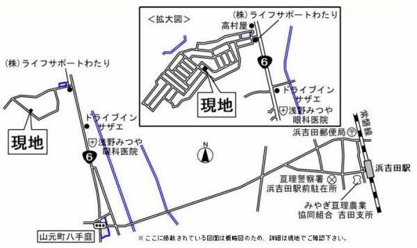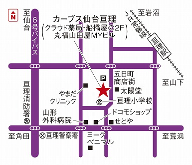 Jr常磐線亘理駅より車で 5分 仙台東部道路亘理icより車で10分 亘理消防署 亘理警察署より車で南へ3分.