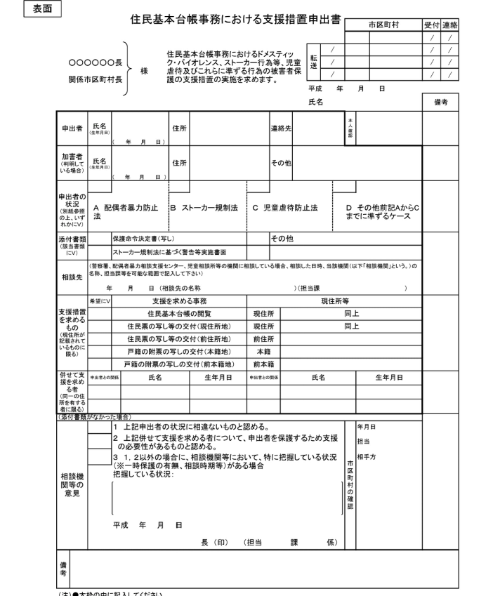 dv ストーカー行為 児童虐待等の被害者の方の住民票 戸籍附票の交付制限について