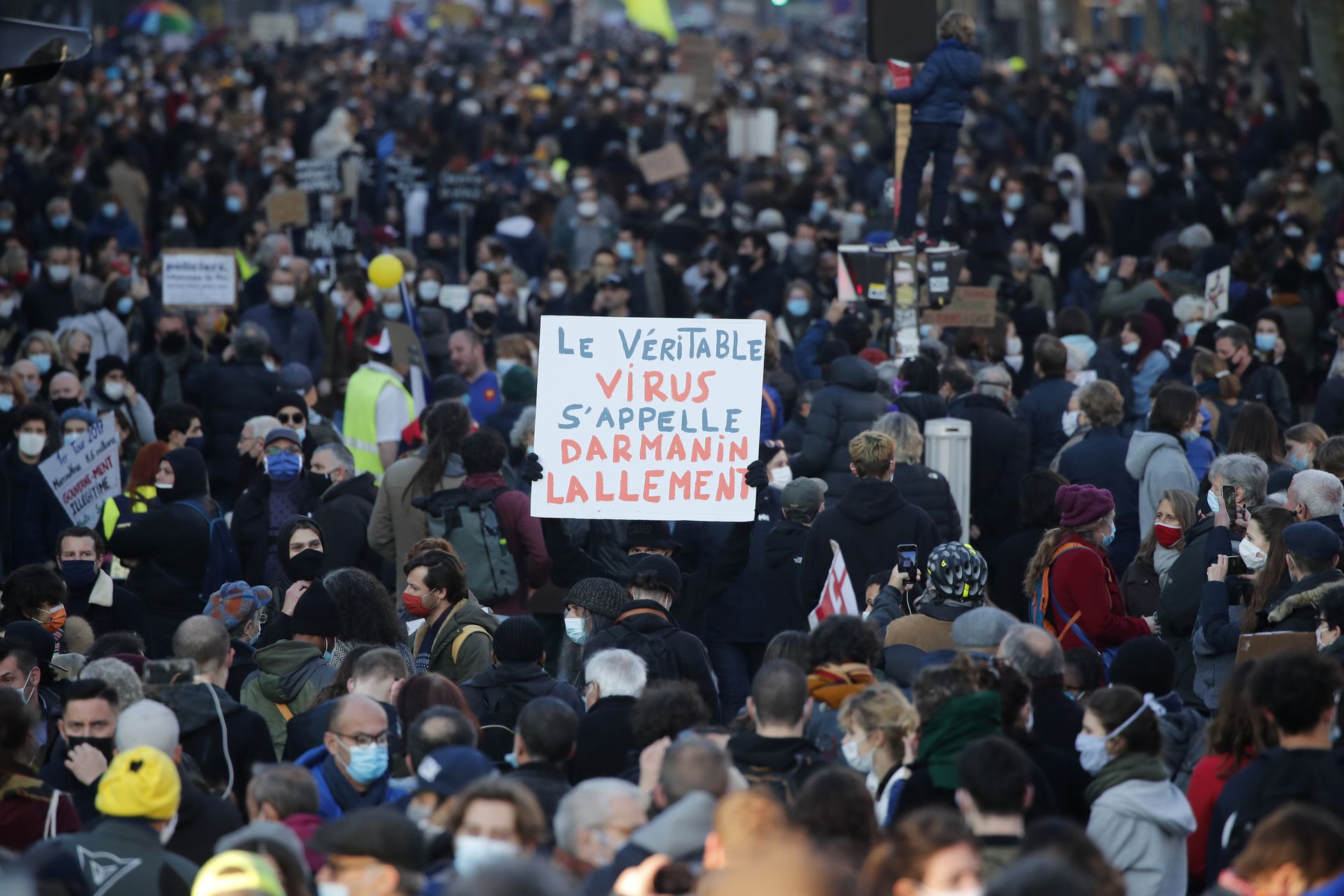抗议保护警察肖像法案 法国多地民众上街 抗议 法国 新浪新闻