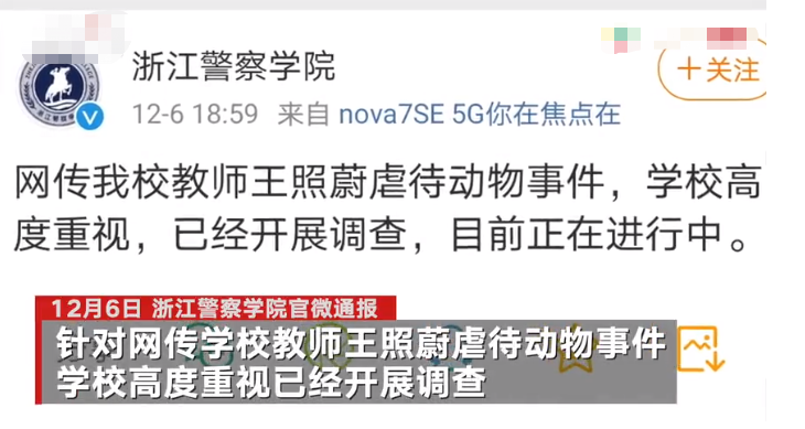 浙江警察学院对教师被指虐待动物展开调查志愿者 容忍不了虐待行为 公益 蛋蛋赞