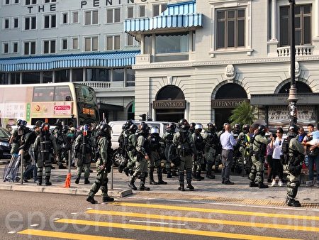 面對蒙面防暴警港人齊唱 願榮光歸香港 追究警暴 我願榮光歸香港 防爆警察 大紀元