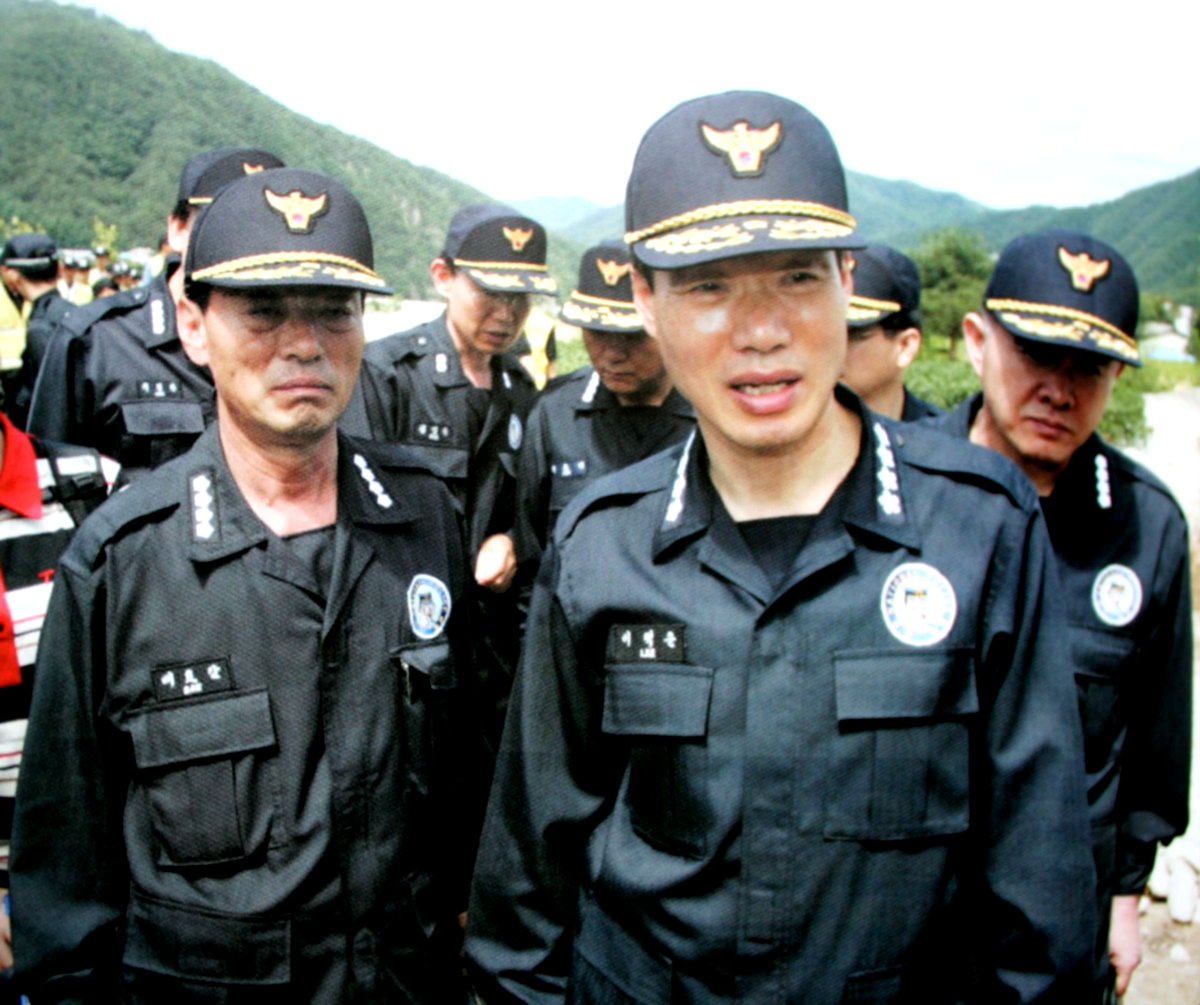 图文 身着运动服的韩国警察在护卫下进行演练 搜狐2008奥运