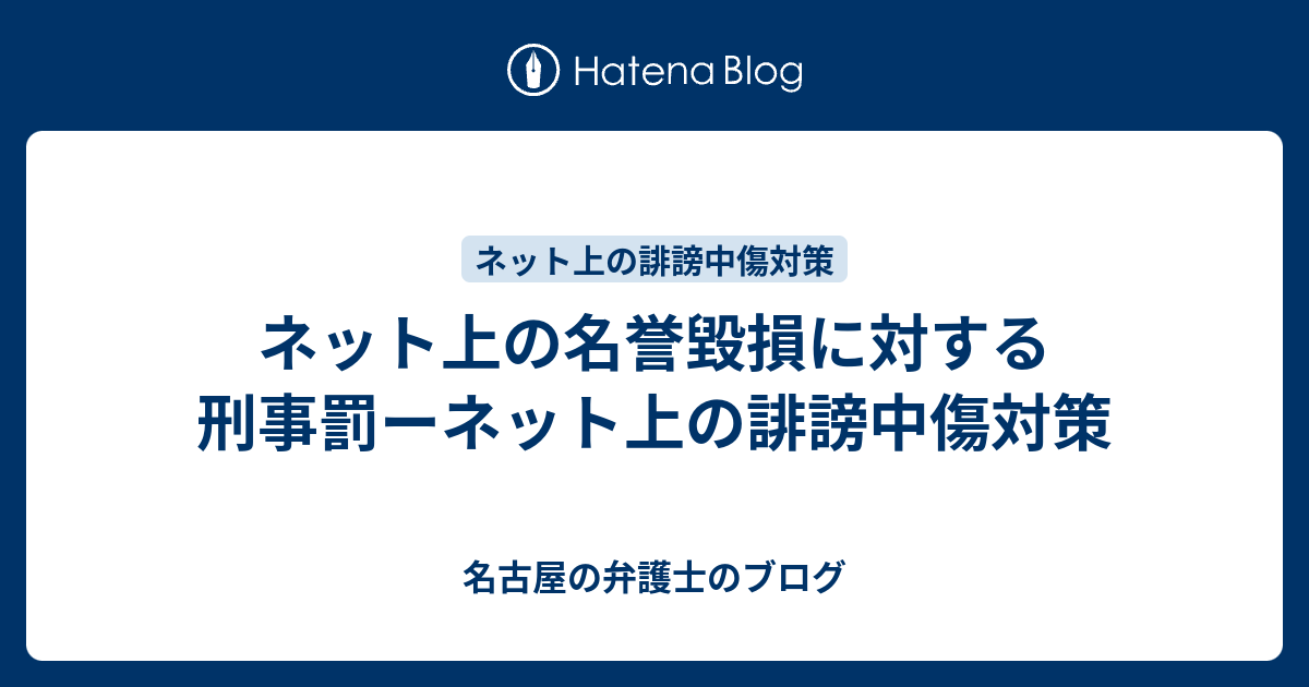 ネット上の名誉毀損に対する刑事罰ーネット上の誹謗中傷対策 名古屋の弁護士のブログ