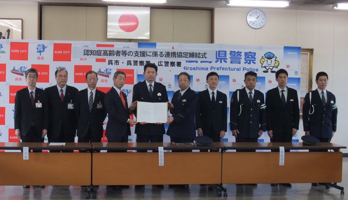 広島県警察 公式 on twitter 先日 呉警察署において 認知症やその疑いのある高齢者を支援していくために 呉市と呉 広警察署が連携協定を結びました 相互に連携し 情報を共有することにより 行方不明者の早期発見や特殊詐欺 交通事故等の被害防止を図ります