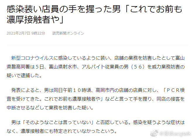 6park com 酒醉后在商店叫 我得了新冠肺炎 日本男子或获刑1年半