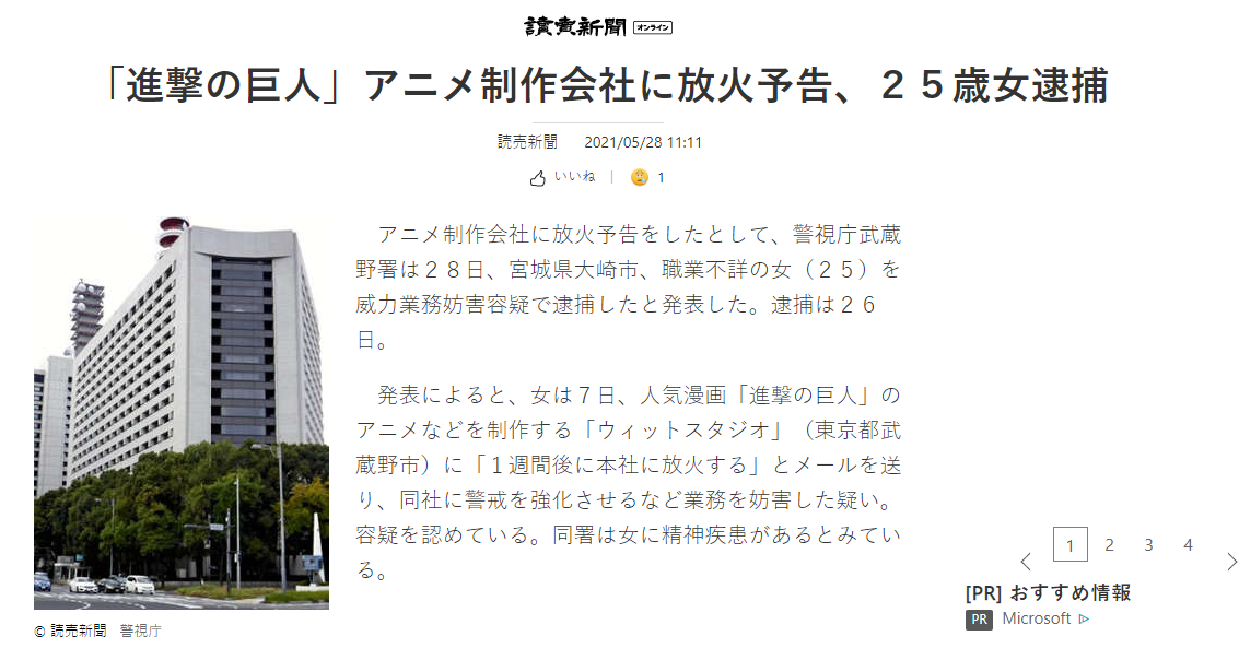 女子欲 火烧 进击的巨人 制作公司 警方称其患有精神疾病 凤凰网