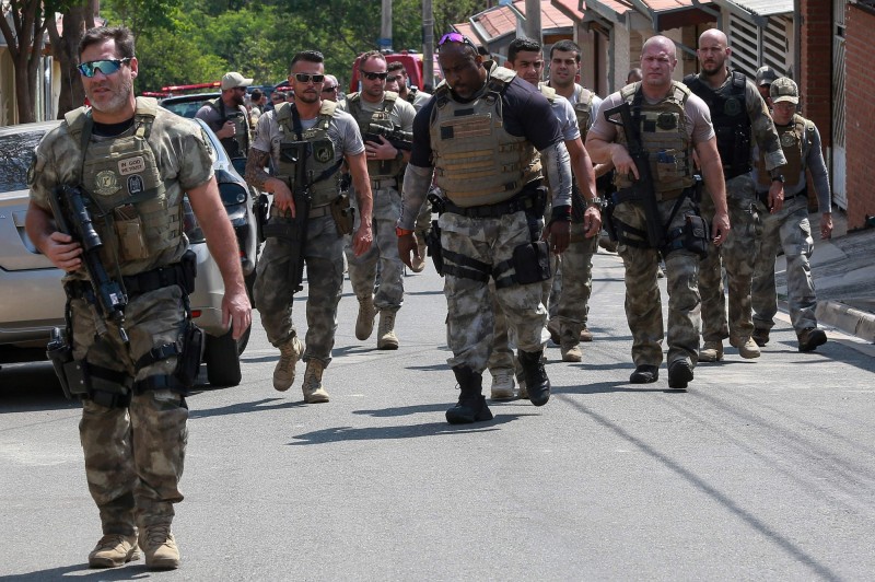 巴西警察精英部队进行反恐演练