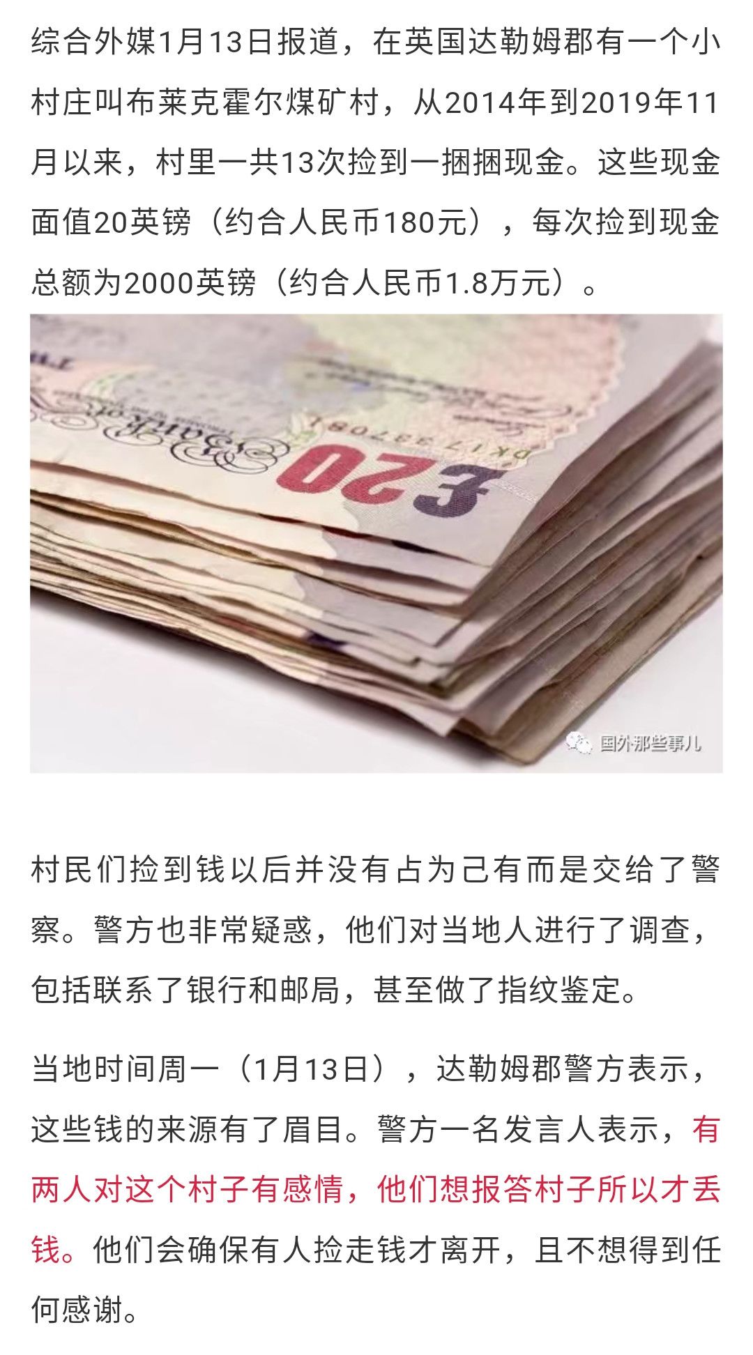 路上不断出现一捆捆现金 村民5年捡到23万 对方竟是为了报恩 约合
