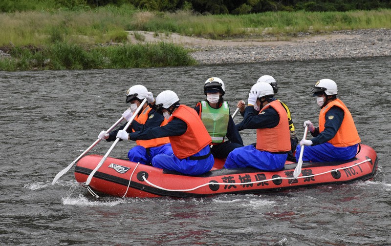 県警が河川敷で災害時救出訓練 久慈川 茨城 毎日新聞