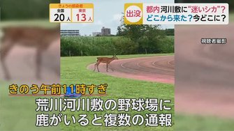 警察官と対峙 都内の河川敷に 迷いシカ どこからきて今どこに