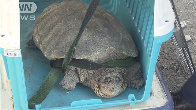 河川敷にカミツキガメ 釣り人びっくり 警察に御用