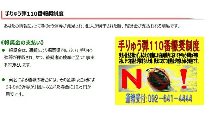 手榴弾ゲットで10万円 大物逮捕なら更にボーナス 福岡県警が報奨金制度を発表 愛すべき道具達 楽天ブログ
