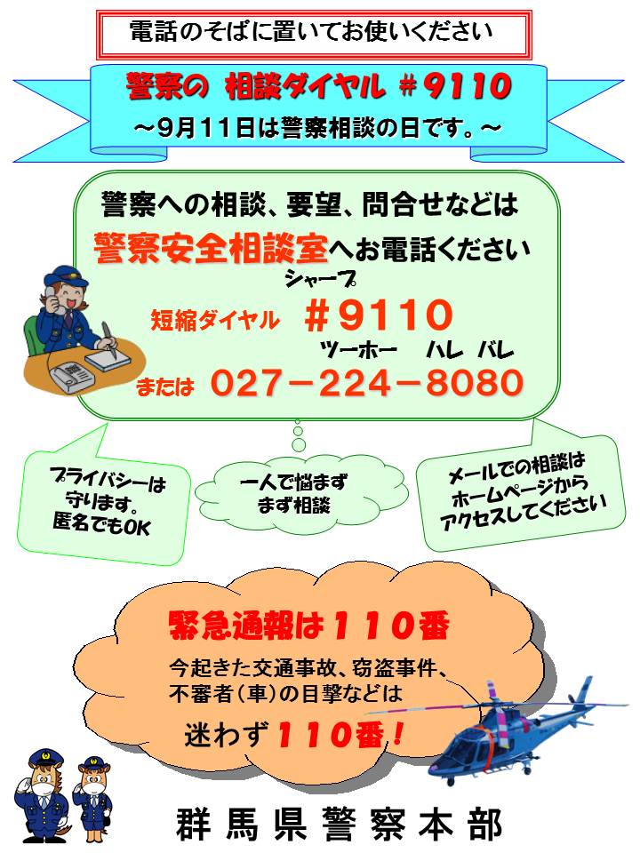 027 224 8080 短縮 9110 027 224 8888 聴覚障害者fax相談 性犯罪被害相談電話 8103 または 0120 271 110. 津田沼 警察 いっぱい 津田沼 警察 河内 警察 車庫 証明 津山 警察 洋画 警察 コンビ 河内 警察 免許 更新 泥 ママ 警察 浮気 警察 通報