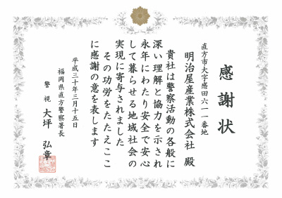 愛知県中警察署長より感謝状を頂きました お知らせ 東海廣告株式会社
