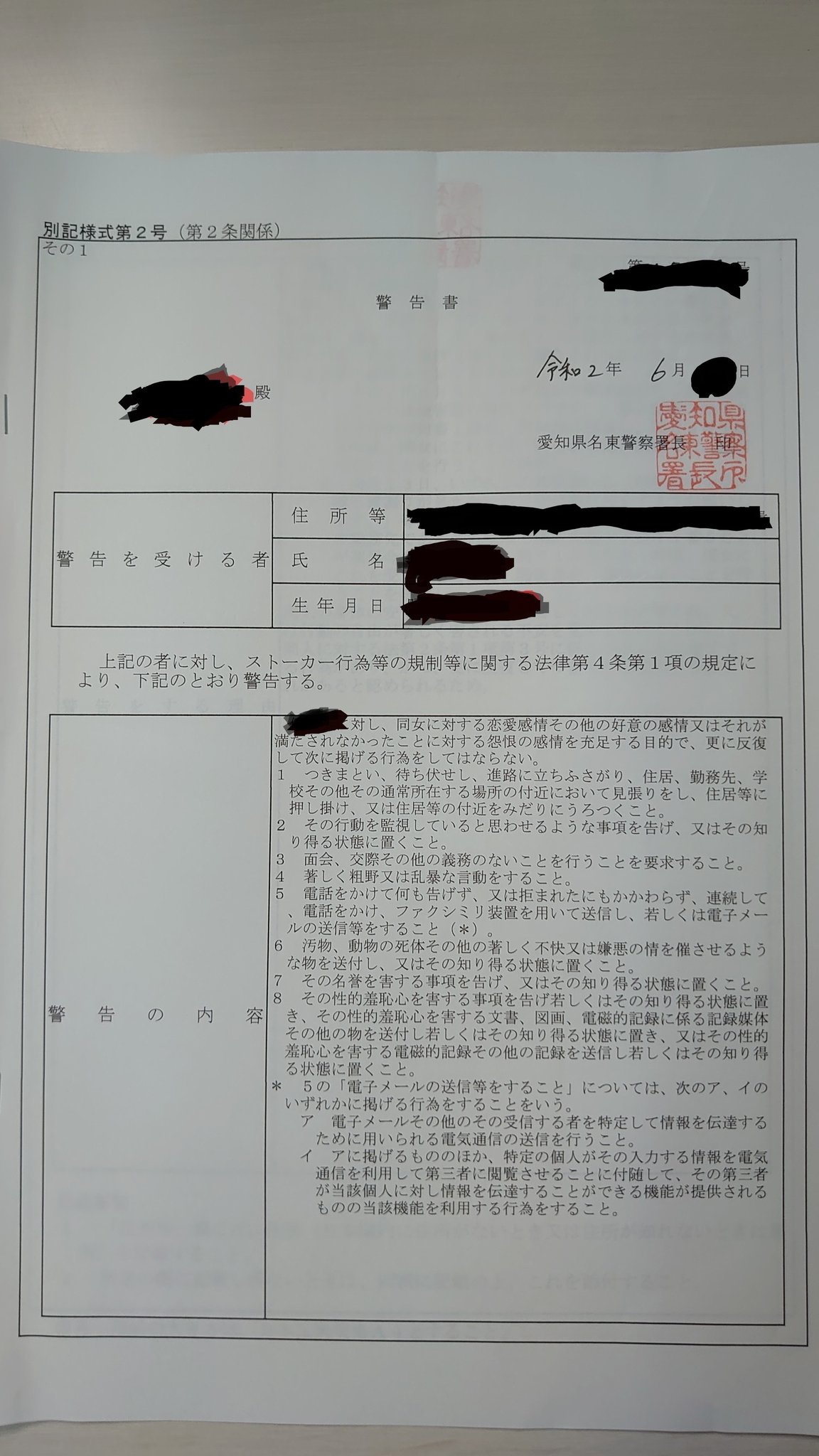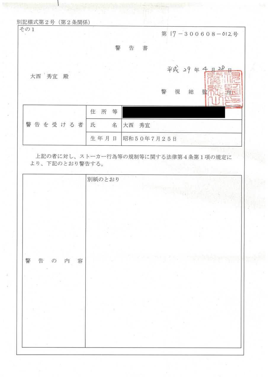 ストーカー行為等の規制等に関する法律事務取扱要綱の制定