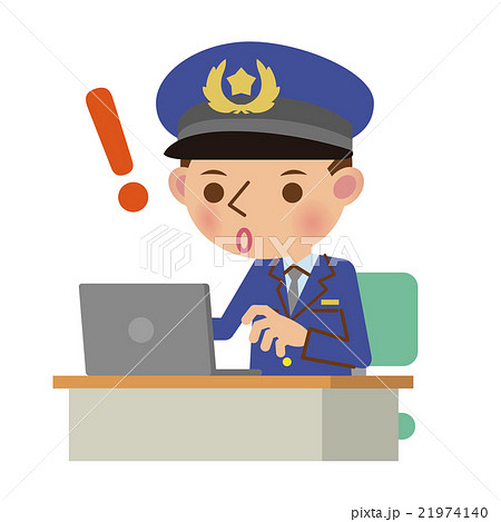 ノートパソコンで何かを発見した男性警察官のイラスト素材 21974140 pixta