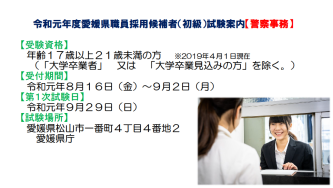 愛媛県警察官採用情報 2018 職員の ワークライフバランスをサポート 結婚したり 家族が増えたり 愛媛県警ではどんな時でも組織として支えられるよう 様々な制度を設けています 福利厚生 勤務環境について 県警hp news ナイター採用説明会