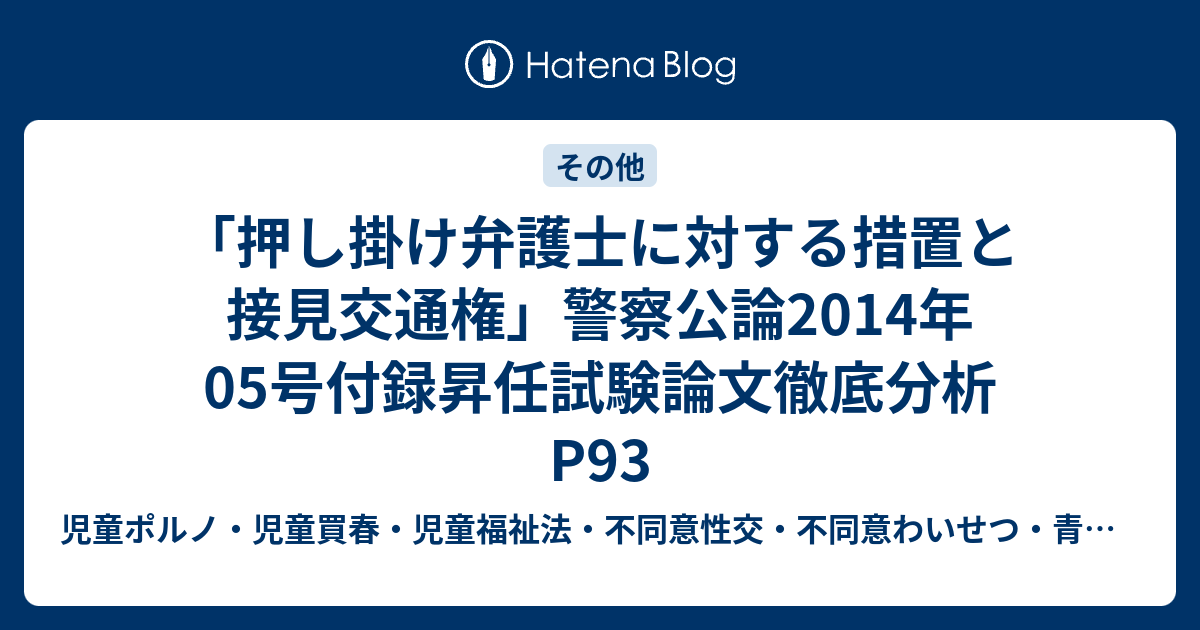 児童ポルノ 児童買春 児童福祉法 監護者性交 強制わいせつ 青少年条例 不正アクセス禁止法 わいせつ電磁的記録記録被告事件弁護人 奥村徹弁護士の見解 はてなブログ