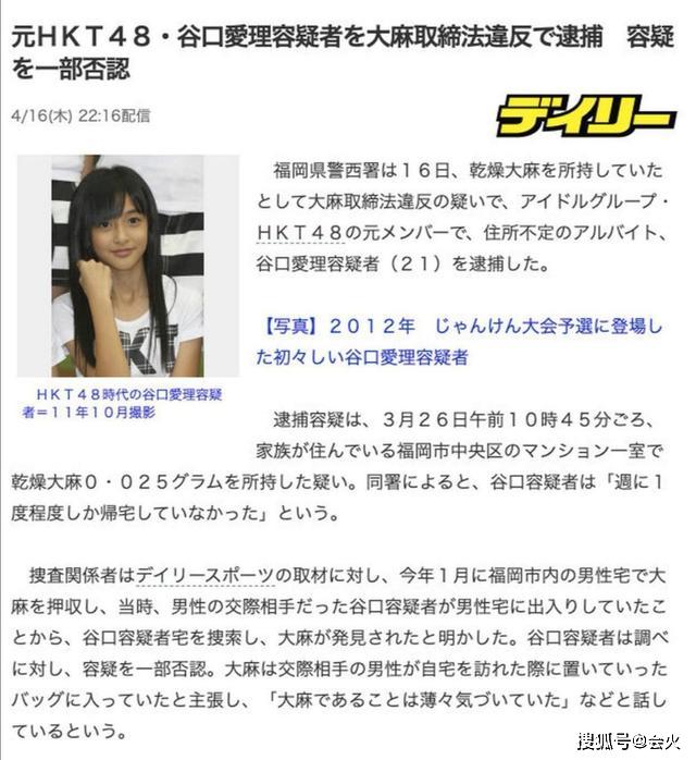 女偶像涉毒 矢口否认之时 还自曝了恋情 谷口
