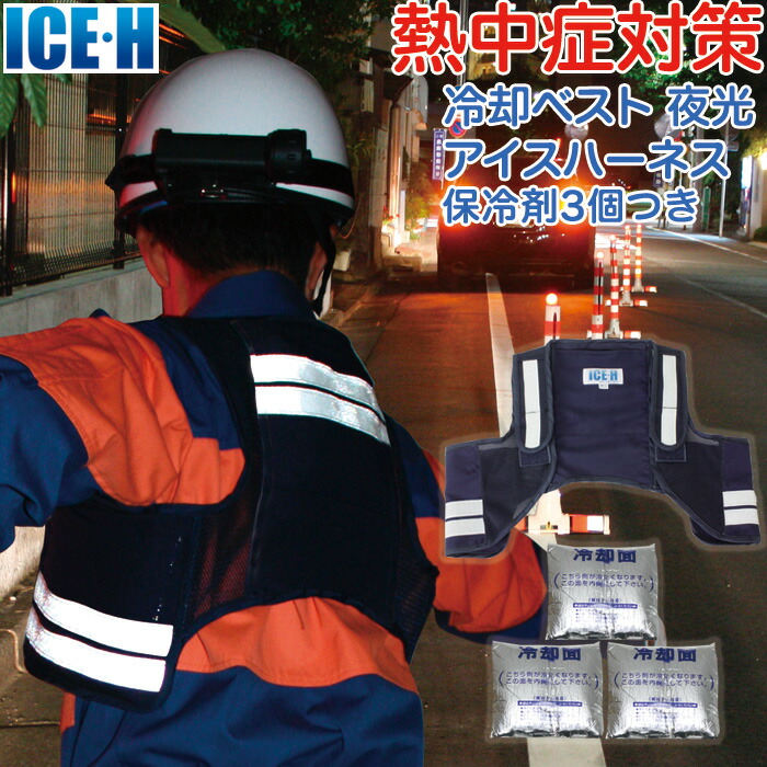 暑さ対策 熱中症対策グッズ 冷却ベスト 上位モデル アイスハーネス 蓄光反射付き 夜光タイプ 保冷剤3個付きセット ak select本店 赤城工業株式会社