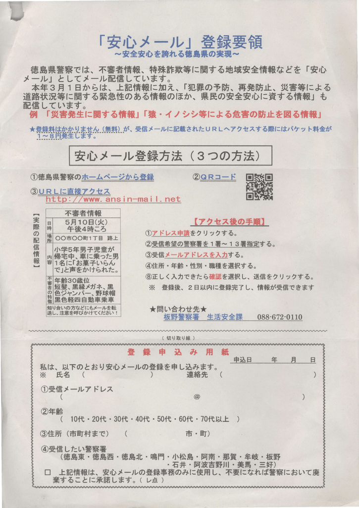 とくしま安全安心情報 徳島県 不審者 わいせつ ちかん 痴漢 ひったくり 窃盗 暴行 声かけ 犯罪 防犯 安全 安心 火災 火事 災害 防災 気象 気象警報 地震