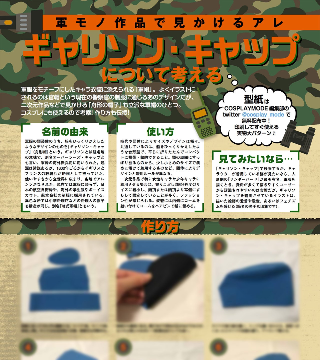コスプレ雑誌cosplay mode コスプレイモード 編集部 on twitter 無料型紙プレゼント 軍服キャラの頭に乗ってる小さい軍帽 ギャリソン キャップ の作り方を最新号にて掲載中 型紙はa4用紙に印刷してご利用ください https t co hmevtyhqxe コスプレ 無料