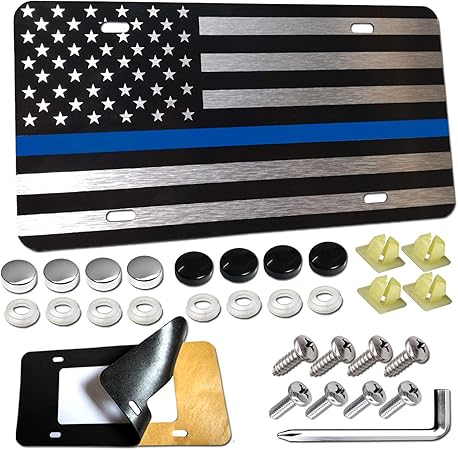 aootf 美国国旗牌照 哑光黑色细蓝线警察铝制复合前板 汽车装饰牌照带不锈钢车牌螺丝 帽子 防摇铃泡沫垫 汽车用品 亚马逊中国