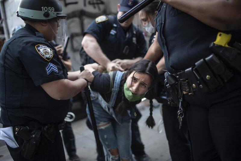 这波操作亮了 美国示威者与警察发生冲突约100名抗议者被捕 新浪新闻