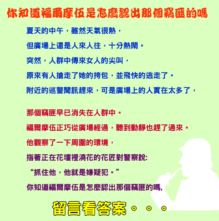 你知道福爾摩伍是怎麼認出那個竊匪的嗎 candymush 糖果村莊