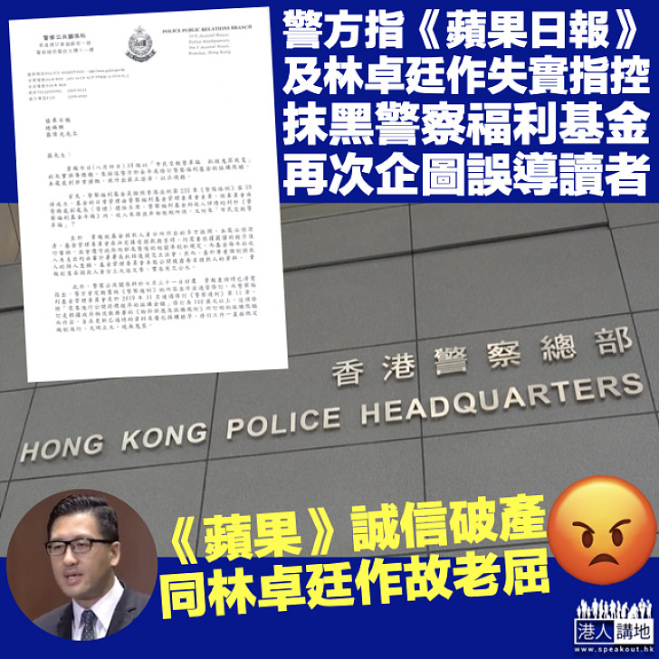 深感憤慨 警方斥 蘋果日報 及林卓廷抹黑警察福利基金企圖誤導讀者居心叵測 港人花生 港人講地