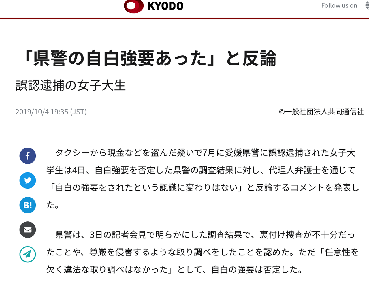 愛媛松山市 女子大生が誤認逮捕 松山東警察署が自白強要 愛媛県警は認めず サイネタ