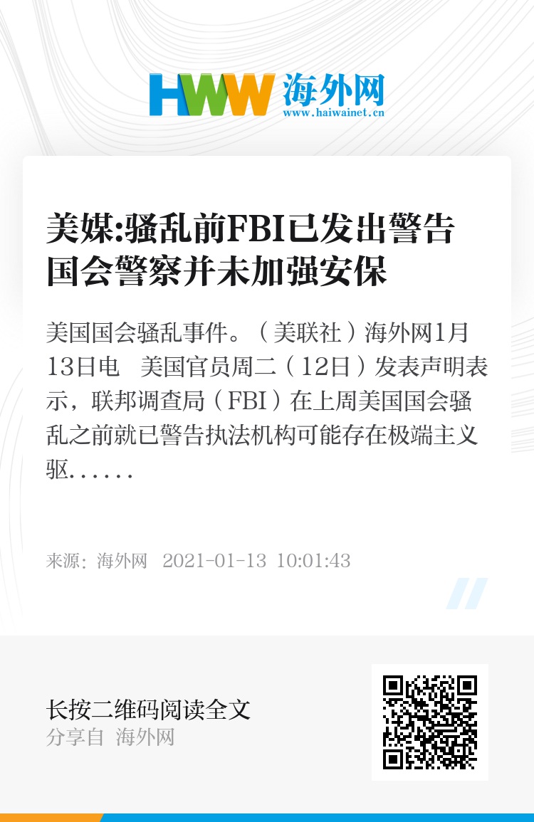 联邦官员警告全美警察局保持警惕防止暴力事件发生 美国联邦调查局 新浪新闻