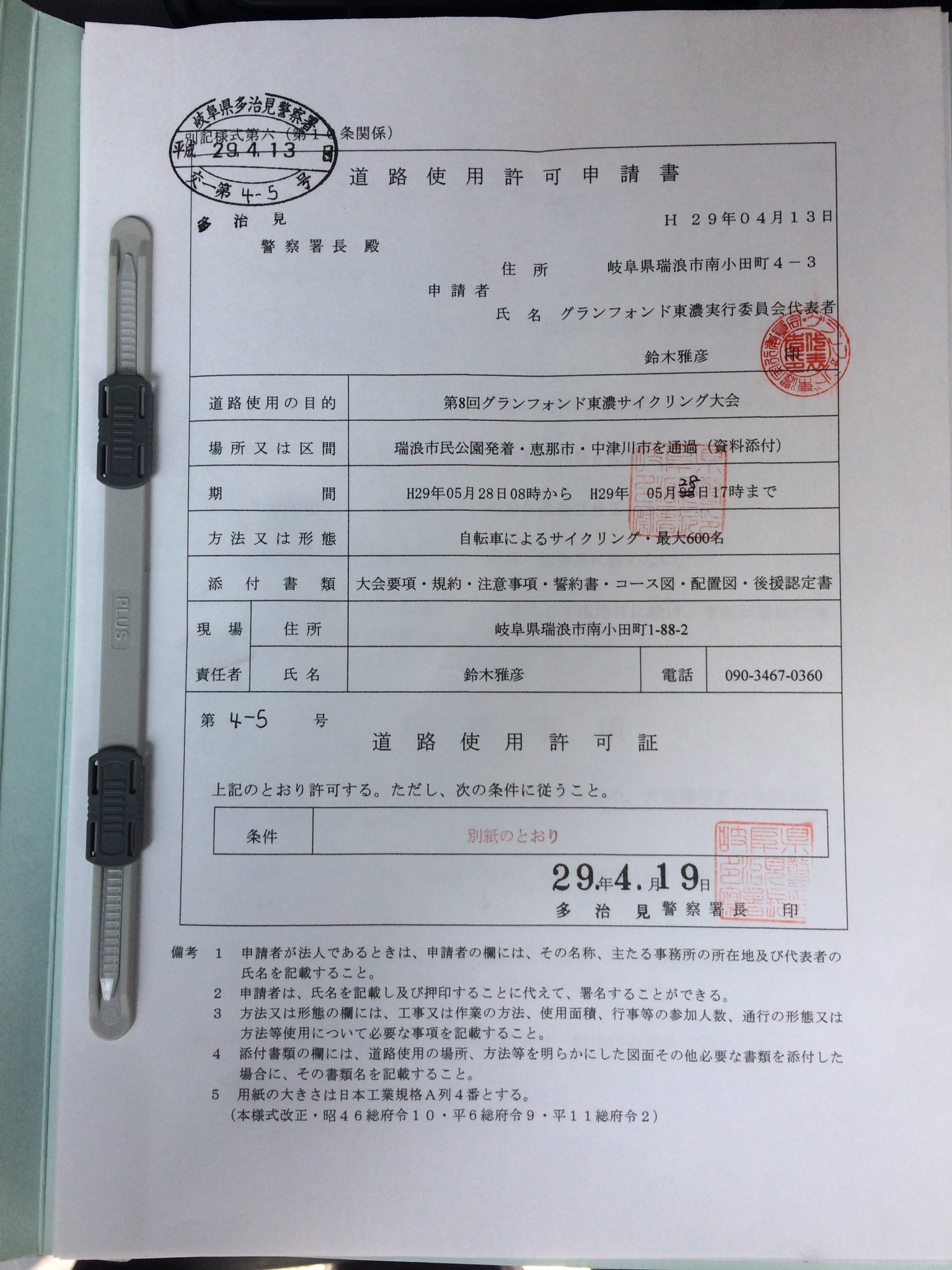 道路占用許可 道路使用許可の申請をさせて頂きました テイクリフォーム