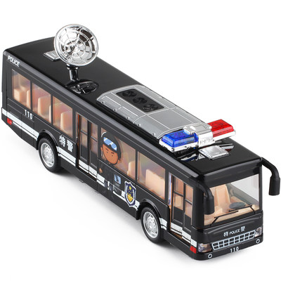警察大巴士客车敞篷双层城市公交电车仿真合金开门小汽车模型玩具 虎窝淘