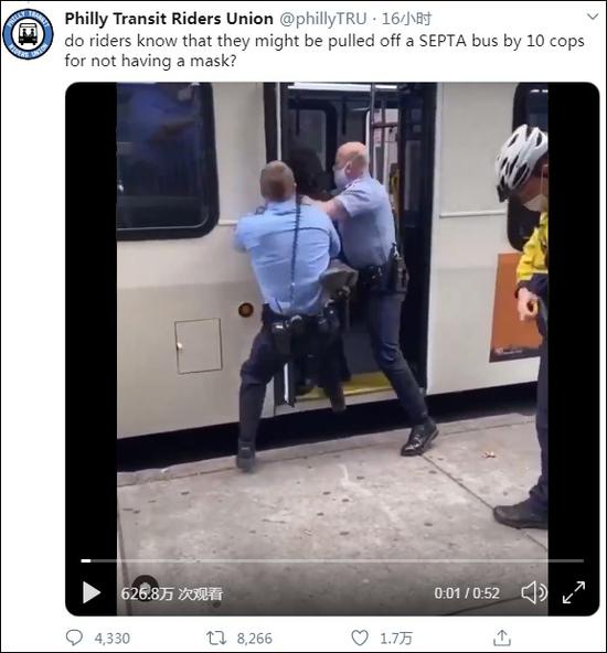 美国费城男子未戴口罩被10个警察拖下公交车 新冠肺炎 美国 新浪新闻