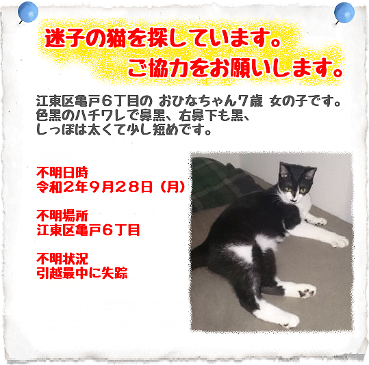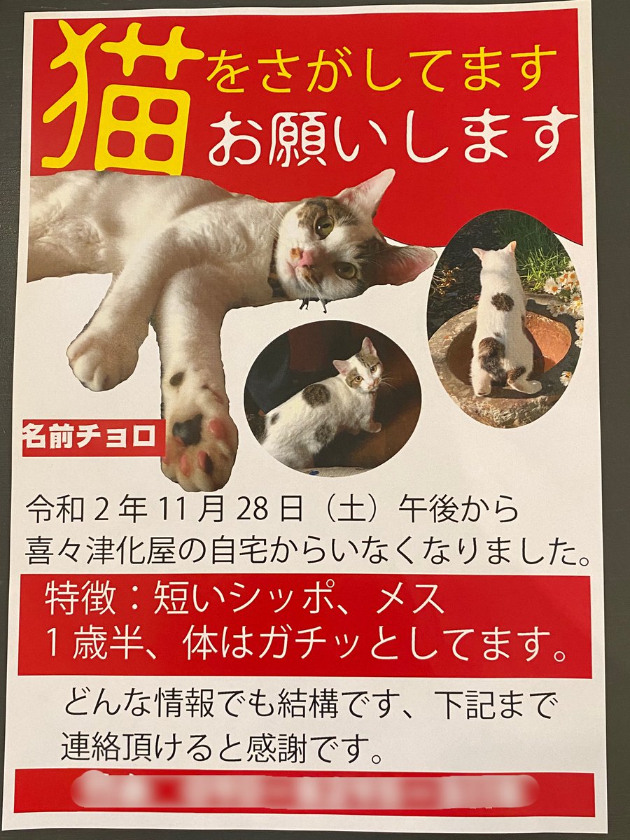 迷子猫探し no 35 警察の誤解をとく てんちゃん無事保護の翌日 失踪から56日目 猫はブログを書かない